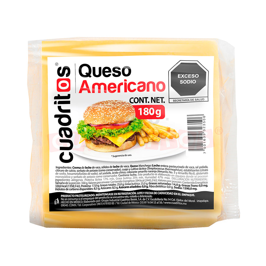 Ingredientes: Crema de leche de vaca, sólidos de leche de vaca, Queso Manchego (Leche entera pasteurizada de vaca, sal yodada, cloruro de calcio, sorbato de potasio (como conservador), cuajo y cultivo láctico (Streptococcus thermophilus), estabilizantes (citrato de sodio, hexametafosfato de sodio), sal yodada, ácido cítrico, colorante amarillo naranja (Amarillo No. 5 y Amarillo No.6), glutamato monosódico y sorbato de potasio como conservador. Contiene leche. Puede contener soya.